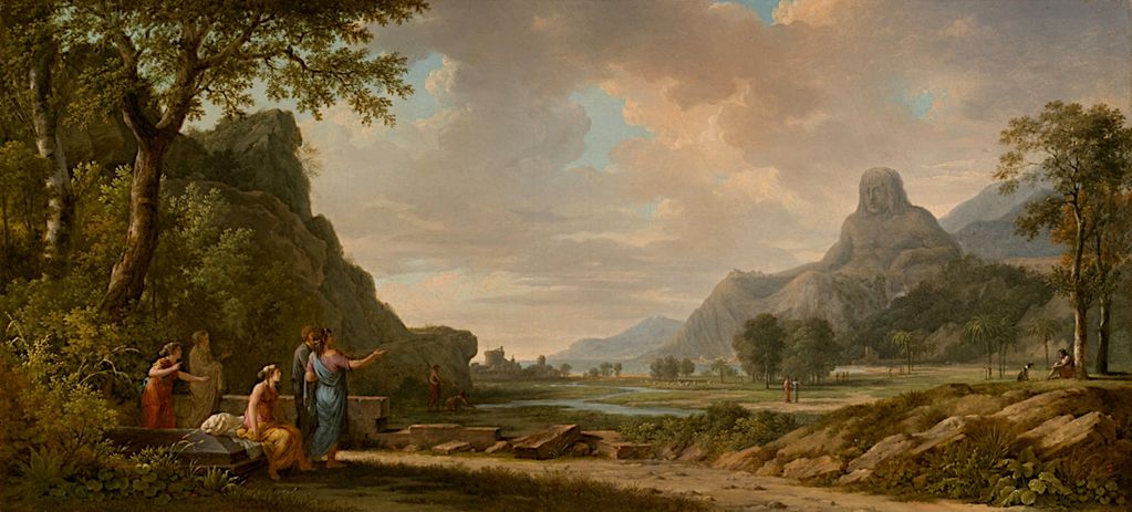 The architect Dinocrates, whose megalomaniac ambitions matched those of Alexander the Great himself, was frustrated by minor officials in his attempts to make an appointment with Alexander to promote his projects. Taking matters into his own hands, Dinocrates, who was young and beautiful with an impressive muscular physique, decided to cast himself in the role of the demigod Hercules and he paraded up and down in the nude, with no more than a lion skin cast over his shoulders, in the square outside the conference hall where Alexander was meeting with his top officials. His appearance caused considerable excitement and he was soon summoned inside to meet Alexander. This gave Dinocrates the chance to promote his plan to carve part of Mount Athos into a giant sculpture of a reclining Alexander holding a bowl containing a lake in one hand and a city in the other hand. Above, Alexander the Great as sculpted into Mount Athos according to the plan promoted by Dinocrates. A painting by the French artist Pierre-Henri de Valenciennes. At right, Dinocrates as he appeared at his meeting with Alexander the Great, with Dinocrates himself representing Alexander as he was to appear in his colossal sculpture and carrying in his hands the bowl, containing the small lake, and the small city which were to rest in the hands of Alexander on Mount Athos. Drawing by the Italian artist Francesco di Giorgio Martini.